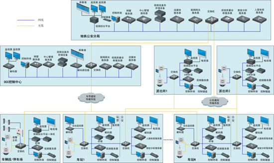 地铁运营视频监控系统主要由车站、车辆段/停车场监控和OCC运营控制中心组成。
